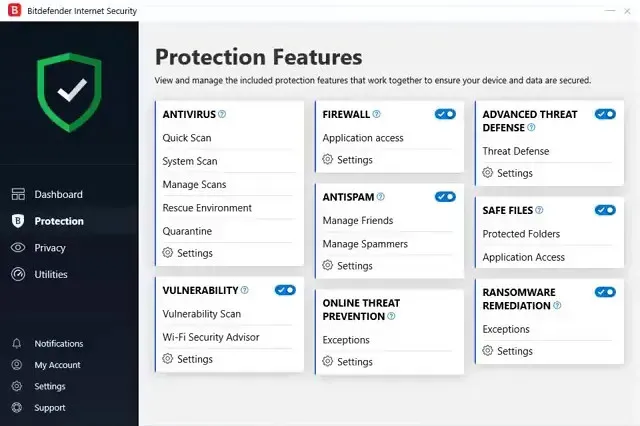 Bitdefender Internet Security offers an impressive suite of features designed to protect against a wide array of cyber threats. From malware and ransomware to phishing and online fraud, Bitdefender provides a multi-layered defense system that ensures your devices and data remain secure.