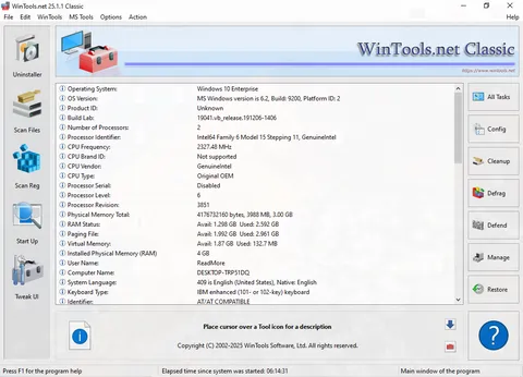 WinTools.net Classic is a collection of utilities for Microsoft Windows operating systems that are designed to boost system performance, clean up your computer, and tweak system settings. It provides users with the tools necessary to maintain a clean, fast, and error-free operating environment. Whether you're an advanced user or a beginner, WinTools.net Classic offers intuitive solutions to common PC problems.